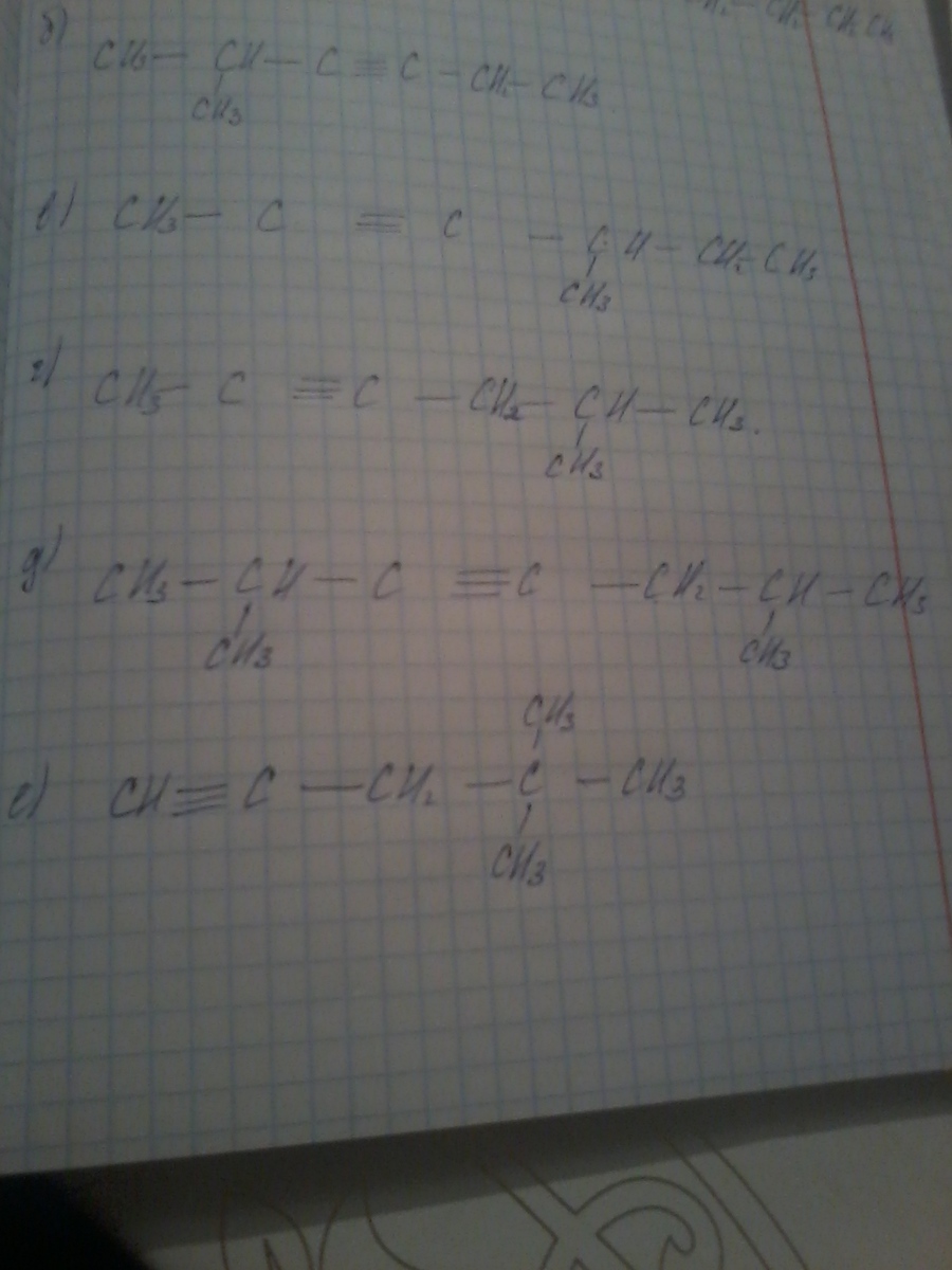 в) 4-метилгексин-2 е) 4,4-диметилпентин-1