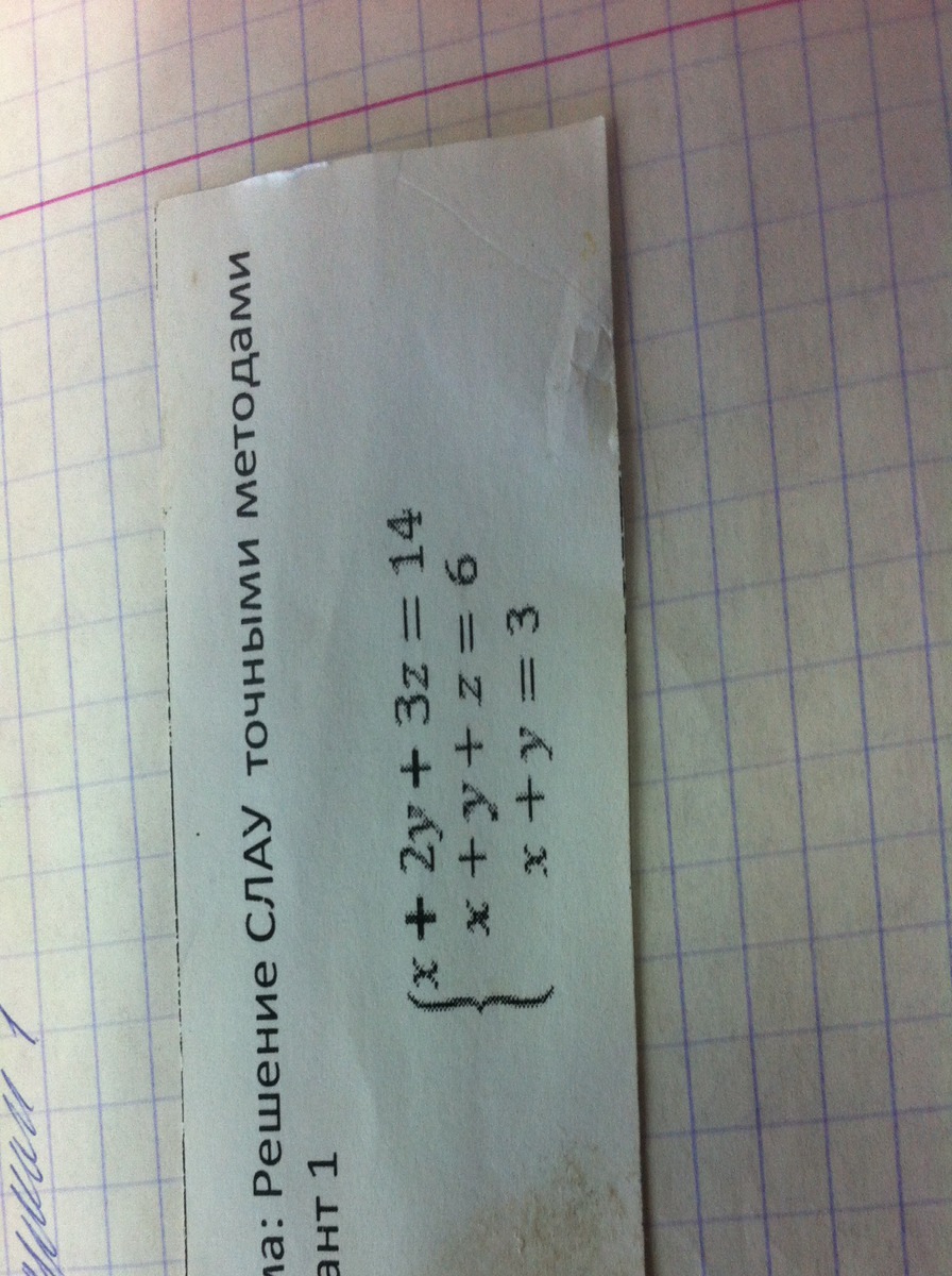 X+y=3 => 3+z=6 =>z=3 dalee 3+y+3*3=14 => y=2 x+2=3=> x=1