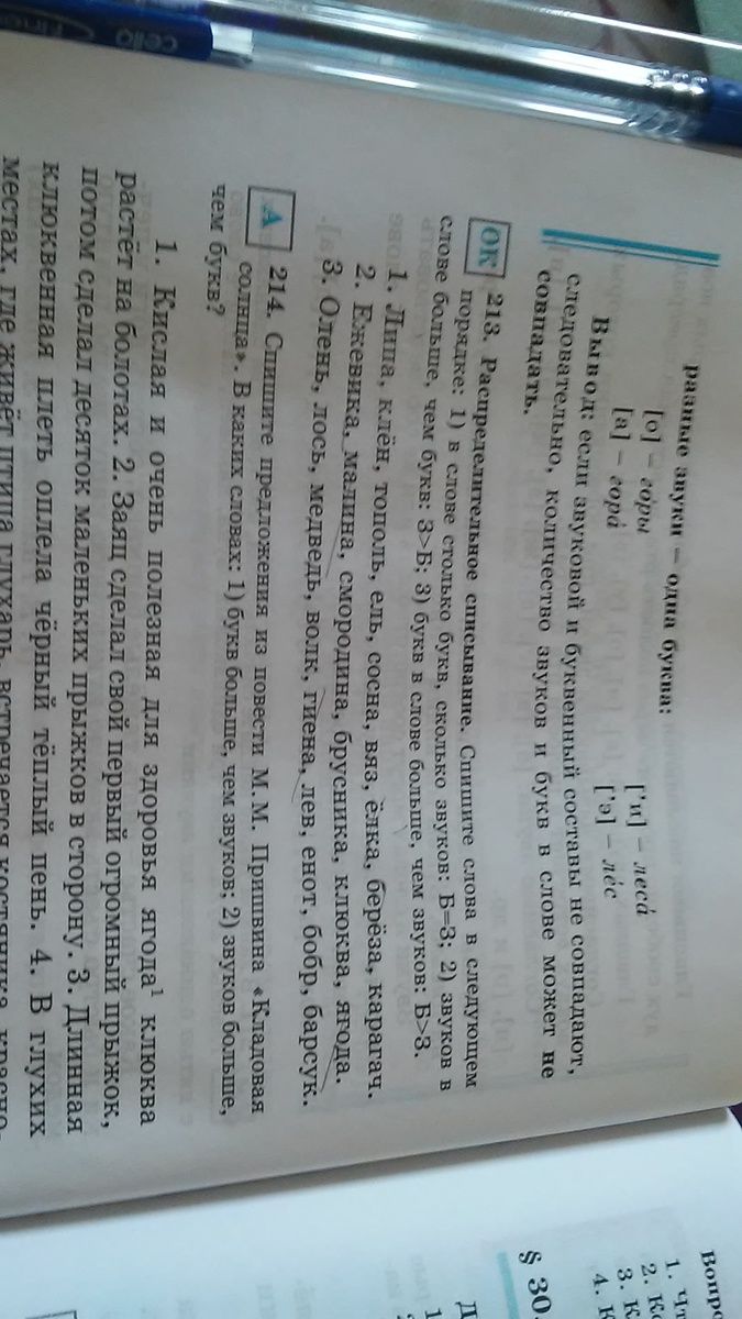 распределите списывание. Спешите слова в следующем порядке:1) в слове столько букв, сколько звуков: Б=З; 2) звуков в слове больше, чем букв: З>Б; 3) букв в слове больше, чем звуков: Б>З. Номер 213