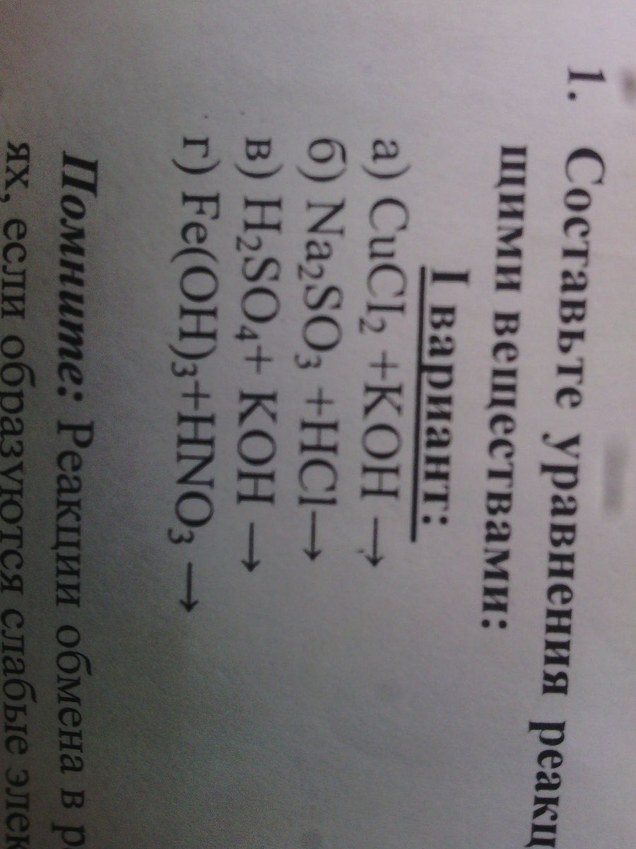 CuCl2 ( + 2KOH= 2KCl+ Cu(OH)2↓Полное ионное уравнение реакции:Cu2+ + 2Cl– + 2K+ + 2OH– = 2K+ + 2Cl– + Cu(OH)2↓.Cокращенное ионное уравнение реакции:Cu2+ + 2OH– = Cu(OH)2↓