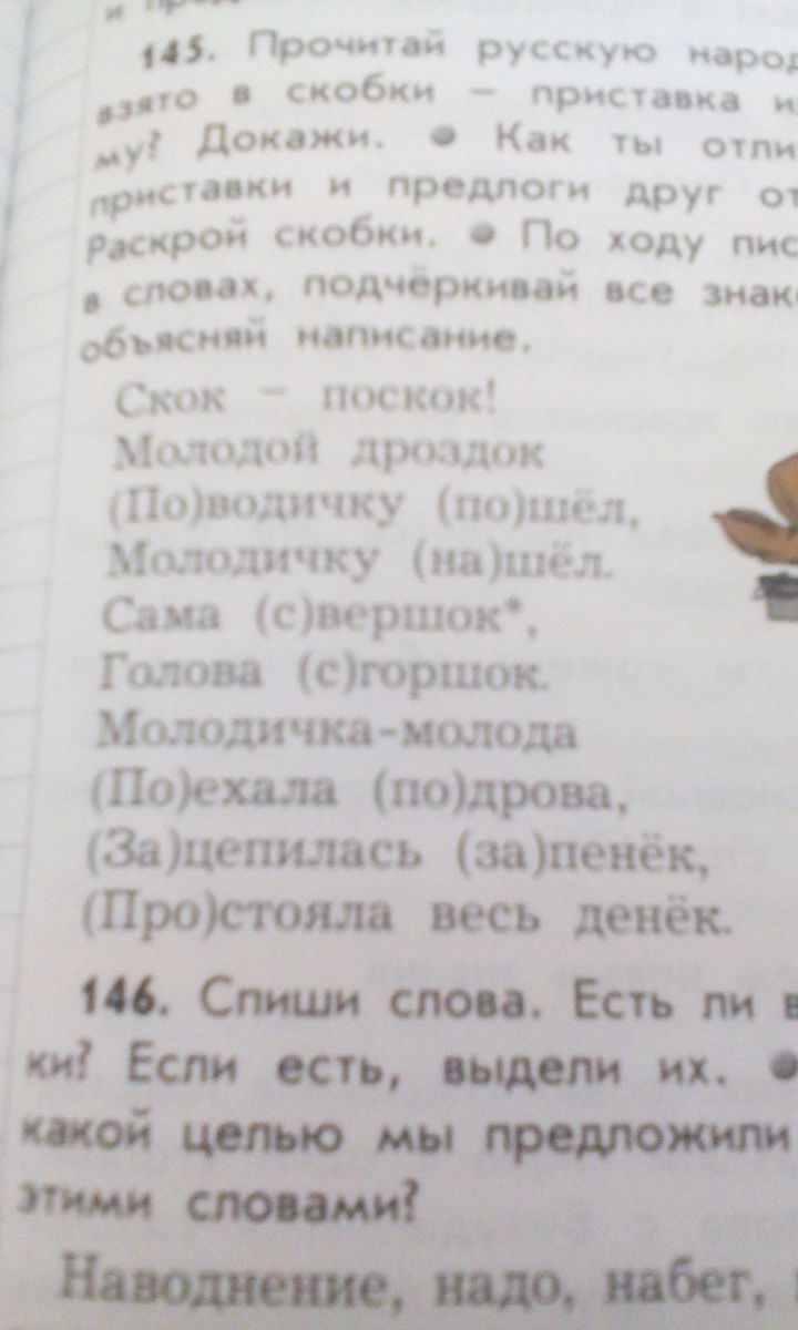 Прочитай русскую народную песенку что взято в скобки приставка или предлог Почему докажи как ты отмечаешь одинаковые приставки и предлоги друг от друга Спиши раскрой скобки по ходу письма ставь ударение в словах Почему подчеркни все знакомые орфограммы объясняй написанные