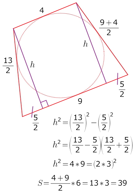 т.е. две равные боковые стороны вместе составляют 9+4 = 13