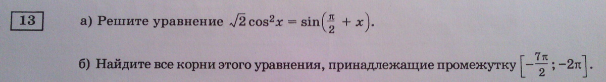 √2cos²x = sin(π/2 + x)