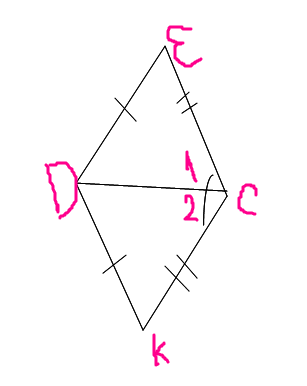 Из равенства треугольников следует, что ∠1 = ∠ 2 ⇒ CD – биссектриса ∠ ЕСК