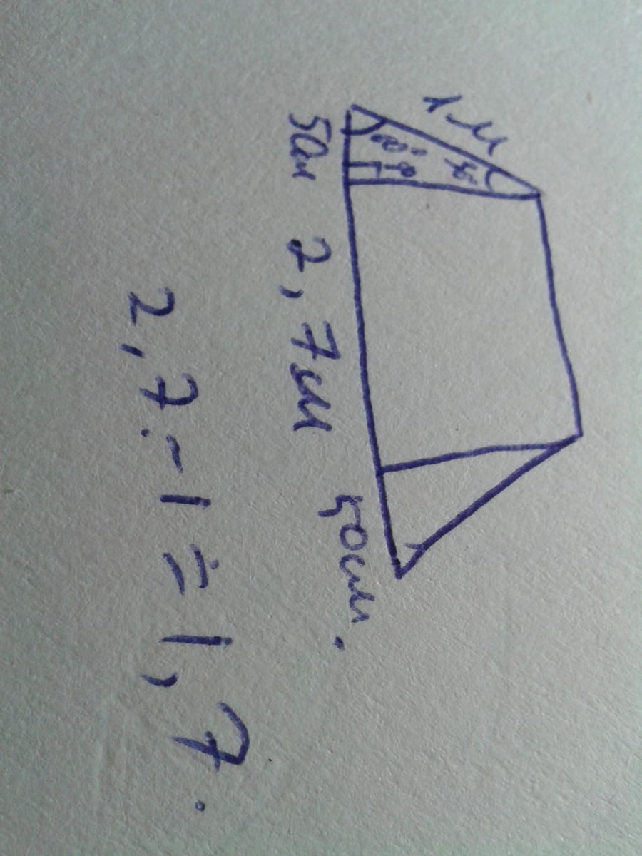 треугольник прямоугольный и имеет угол 30° поэтому противоположная сторона 2х меньше катета в данный момент катет у нас 1м поэтому у нас получилось 50см. затем мы убавляем 50+50=100=1м получится 1,7м