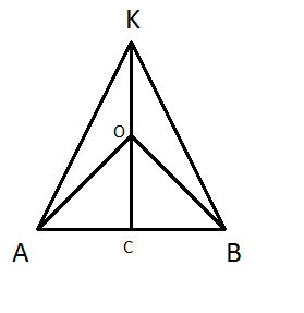 В равнобедреном треугольнике ABK основанием явля ется сторона AB. Точка O лежит на медиане Kc. Докажите, что треугольник OAK= треугольнику OBK