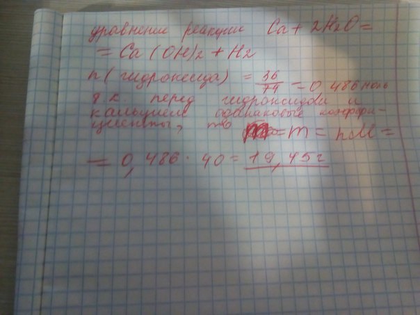 Сколько граммов кальция вступило в реакцию с водой если в результате получилось 36 грамм гидроксида кальция?