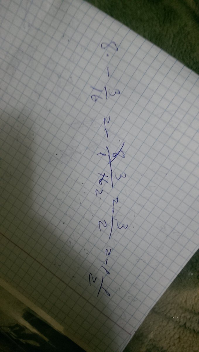 Восьмёрка пойдём в числитель, то есть 8 умножаем на 3 и делим на 16, получается 24 разделить на 16; не забываем про минус, т.к. он стоял перед дробью. Получаем ответ: -1.5