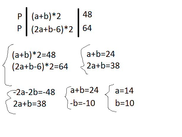 Периметр прямоугольника 48 см.Если одну сторону увеличить в два раза,а другую уменьшить на 6 см,тогда периметр будет равен 64 см.