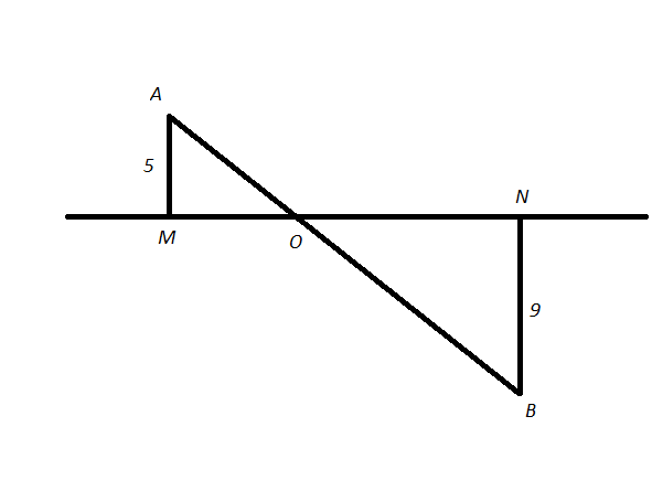 Треугольники AMO и BNO подобны, AM/BN=AO/BO=5/9.