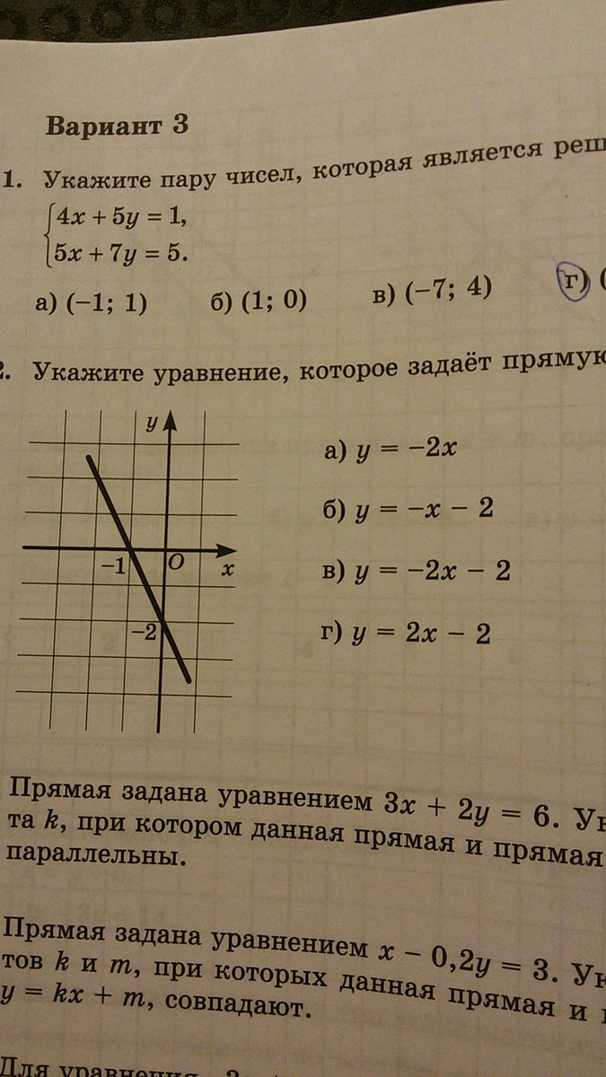 Укажите уравнение, которое задает прямую, изображенную на рисунке.