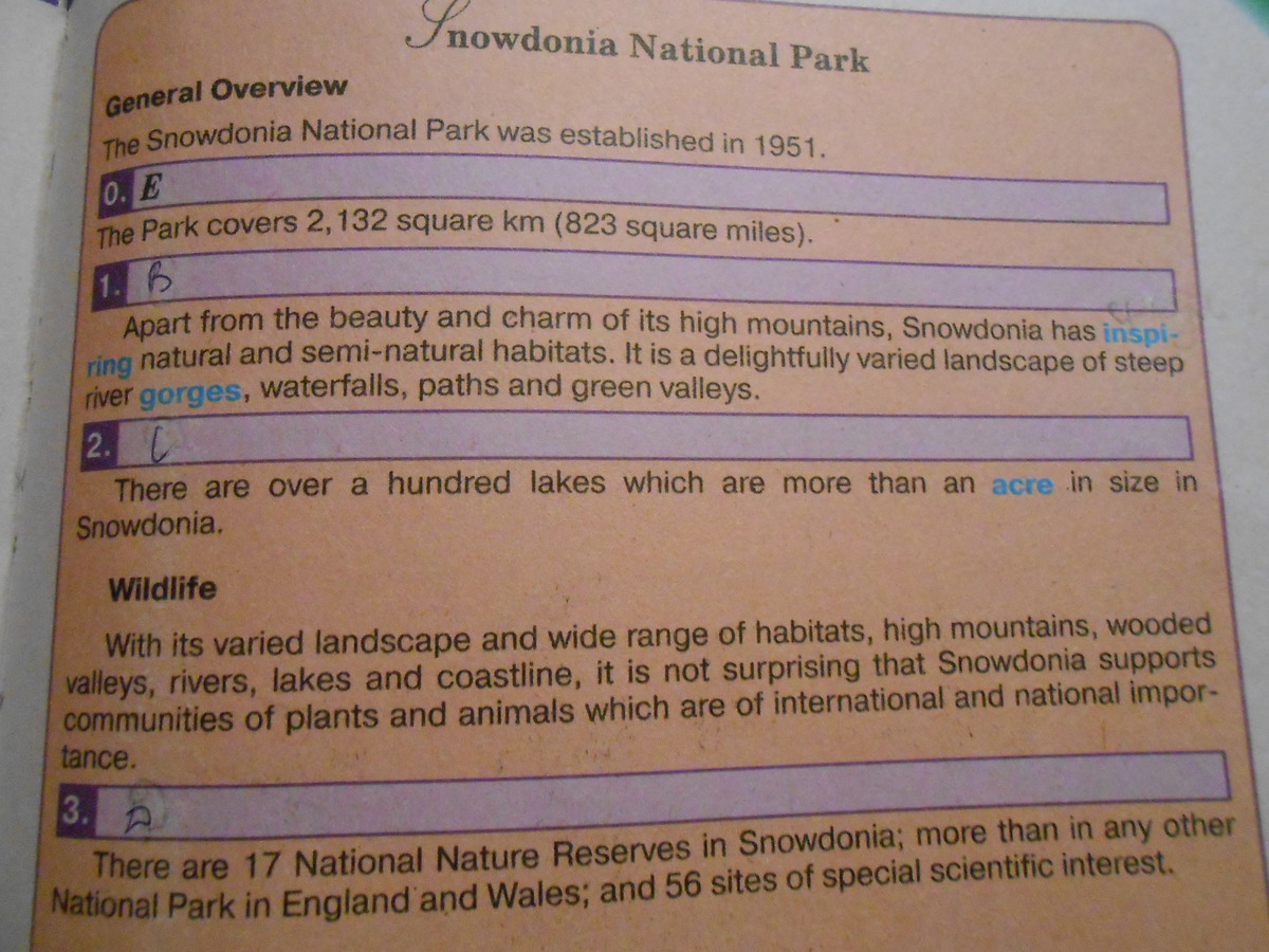 Помимо красоты и очарования его высоких гор, Сноудония отличается вдохновляющей полуприродной средой обитания. Это великолепие изменяющегося ландшафта острых речных ущелий, водопадов, тропинок и зелёных долин.