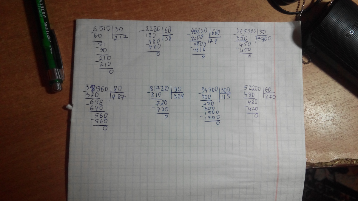 Примеры в столбик : 6510:30,2280:60,46800:600,395000:50,38960:80, 81720:90,34500:300,52200:60. Срочно , прошу помощи . 20 баллов