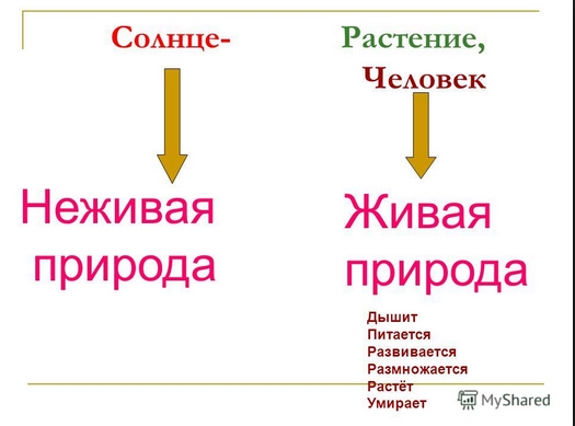 Природа – это все что нас окружает и не сделано руками человека. Природа бывает живая (слайд 3);