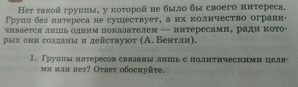 1.Группы связаны не только с политикой,ведь есть группы художников,группы танцоров и т.д.,а ведь у них разные интересы. 2.Группа может стать политической в обсуждении каких-то разных,организовачных вопросах.
