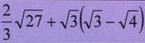 2/3 × 3 корень из 3 + 3 - 2корень из 3= 2корень из 3 + 3 - 2корень из 3= 3