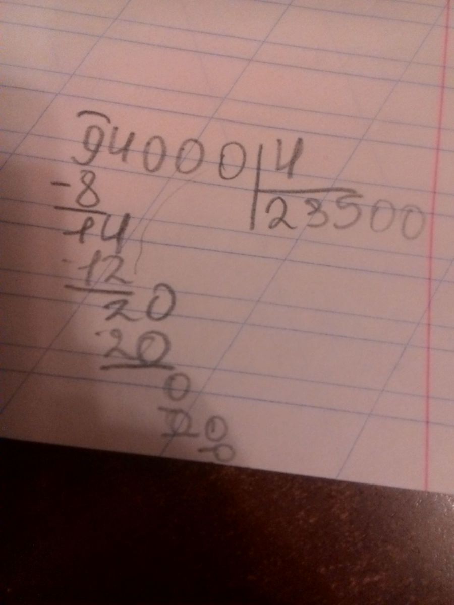 сначало решаем без нолей: 1)94:4=27 потом приписываем 3 ноля: 2)27000