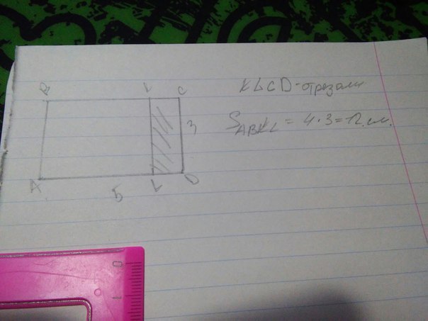 надо узнать площадь начального прямоугольника потом площадь полоски которую отрезали а потом оставшуюся площадь 5*3=15 3*1=3 15-3=12