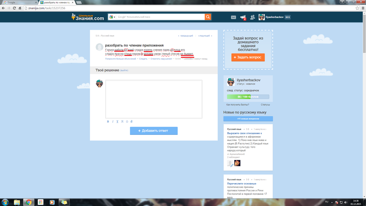 Горька работа,да хлеб сладок.корень учения горек,да плод его сладок.Красна птица пером,а человек умом.Умный спесив не бывает.