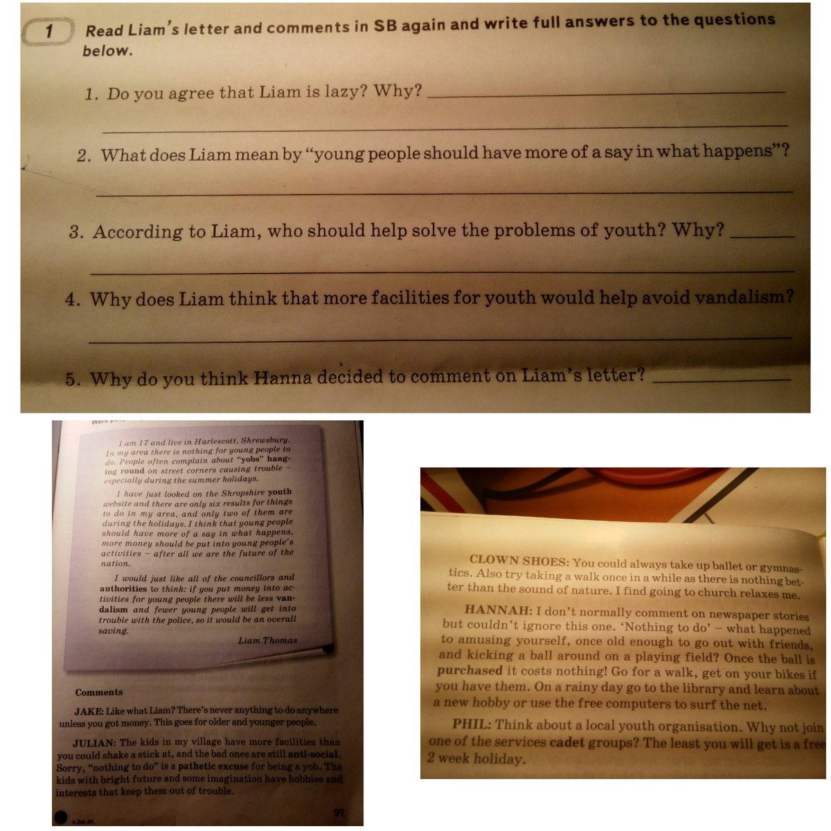 1- I agree that Liam is lazy because he doesn't do anything unless he gets money