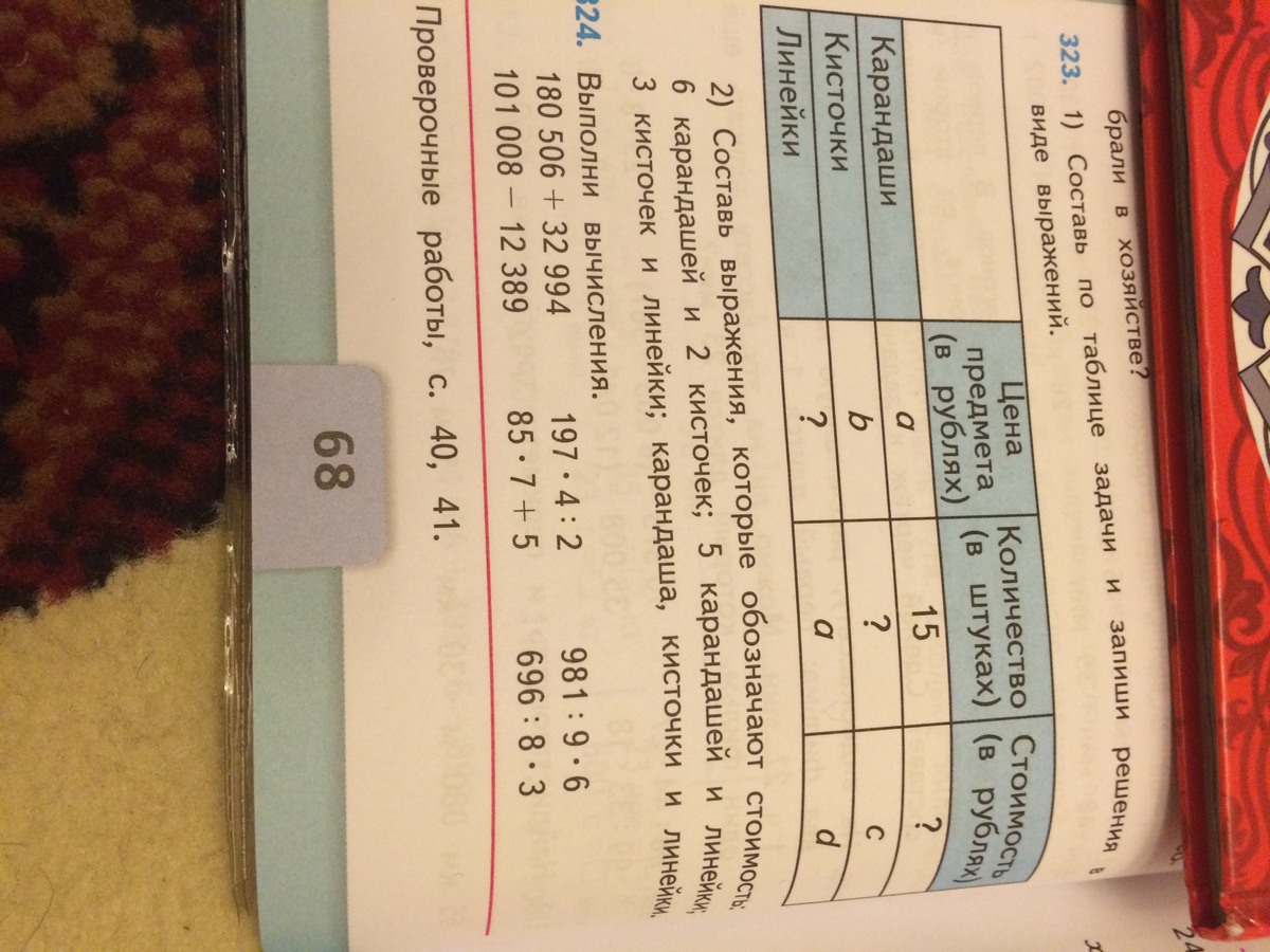 а+b+d/a - стоят 1 кисточка, 1 линейка, 1 карандаш