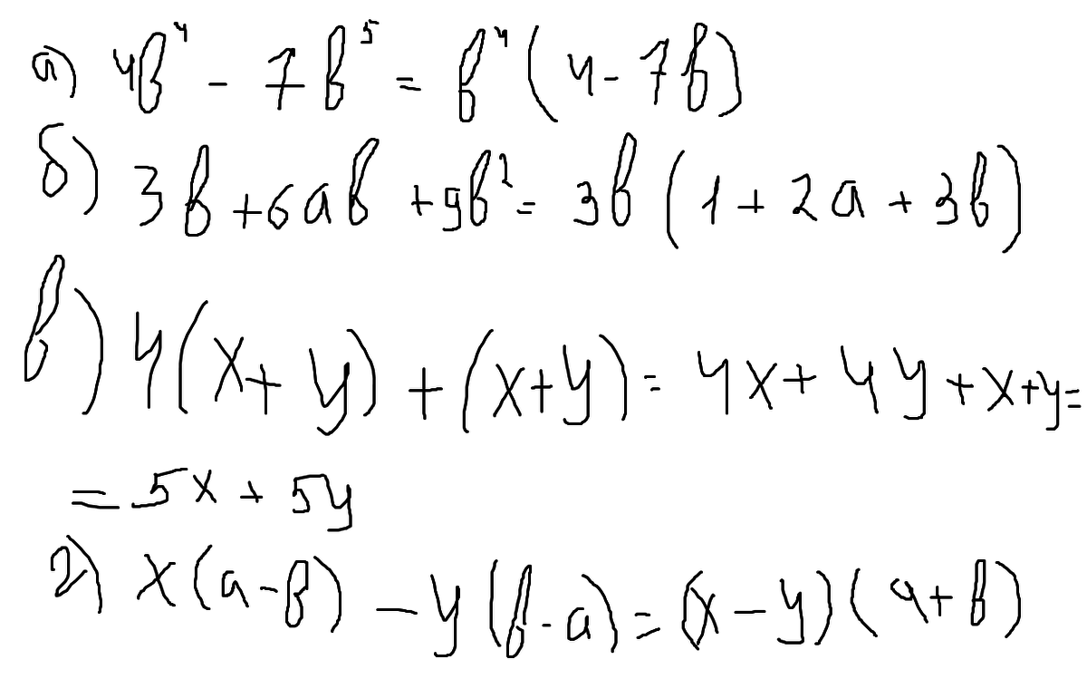 b в четвёртой выносим за скобки =b^4(4b-7) если сейчас перемножим то получим 4b в пятой минус7b в четвёртой