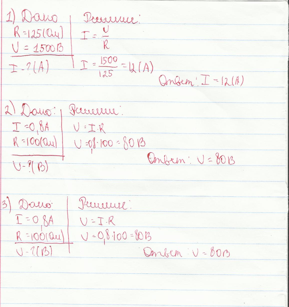 2)Сила тока в реостате 0.8А, его сопротивление 100 Ом. Опредилите напряжение на его клемах.