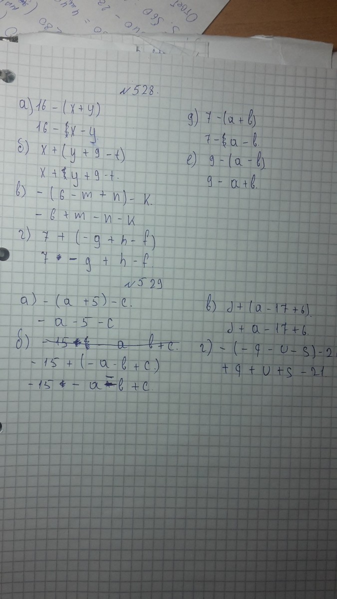 если перед скобками -, то при раскрытии отбрасываем скобки и меняем знаки в ней, а + оставляем выражение неизменным !
