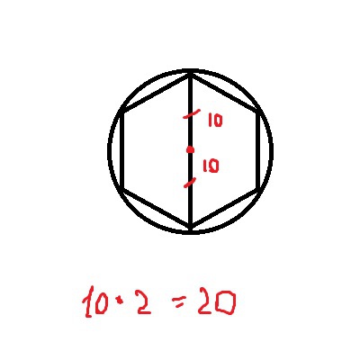 Если шестиугольник вписан в окружность, значит он правильный: