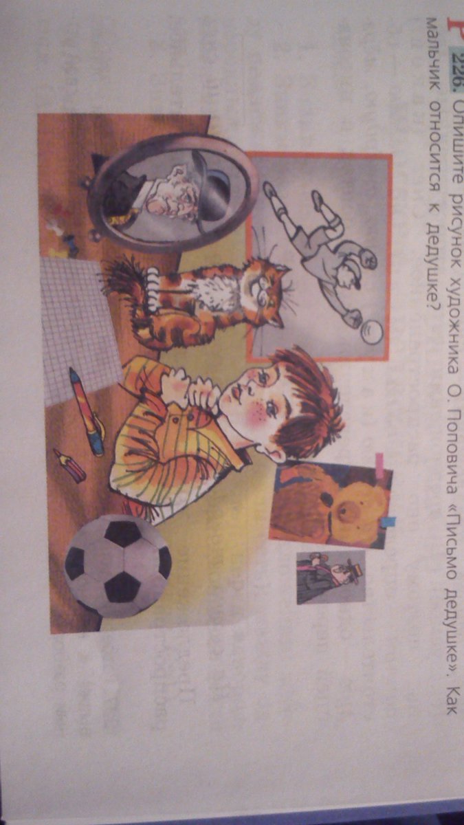 Опишите рисунок художника О. Поповича " Письмо дедушке". Как мальчик относится к дедушке.