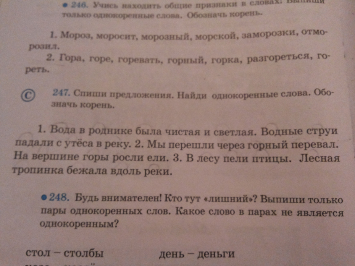 2) Мы перешли через горный перевал. На вершине горы росли ели.