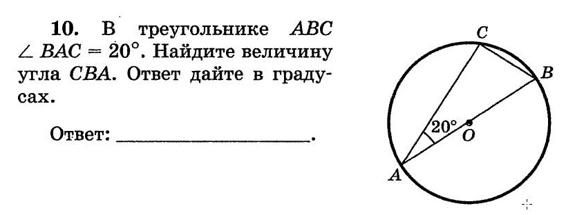 Угол СВА = 180 - (20+90) = 180 - 110 = 70.