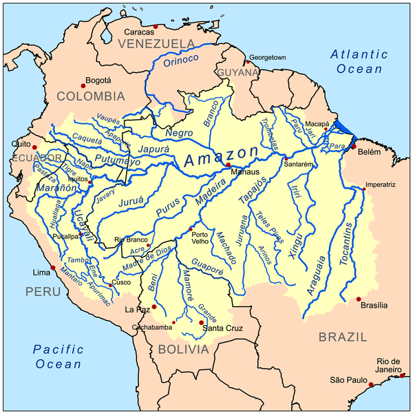 мая большая низменность на Земле, площадь свыше 5 млн км². Расположена в Южной Америке. Простирается от Анд доАтлантического океана и между Гвианским и Бразильским плоскогорьями, в бассейне самой полноводной реки мира Амазонки. Расположена в области синеклизы Южно-Американской платформы, заполненной главным образом палеозойскими морскими и мезо-кайнозойскими континентальными отложениями