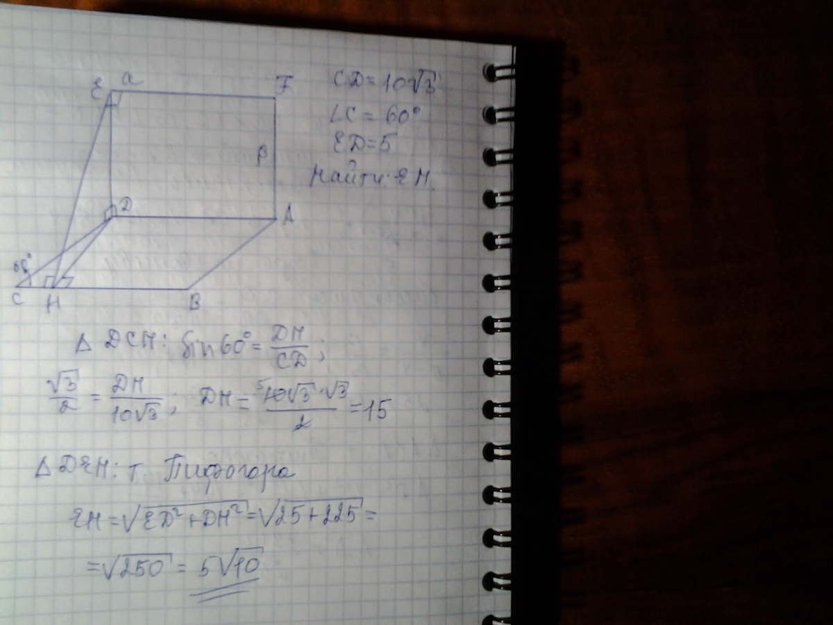 Использовано определение синуса, теорема Пифагора, теорема о трех перпендикулярах