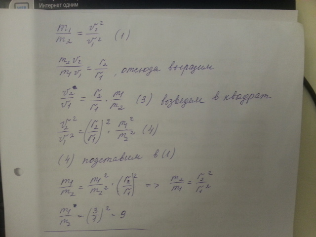 отсюда m₁/m₂=v₂²/v₁² (1)
