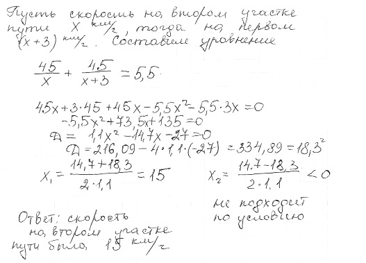 Пусть х - скорость, пройденная второй половиной пути. Тогда (х+3) - скорость пройденная первой половиной пути. Составим уравнение: