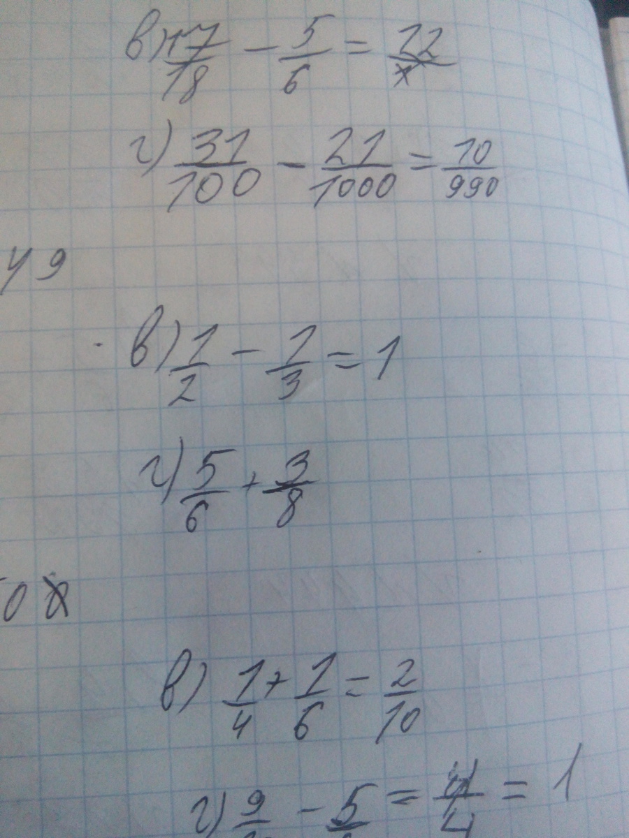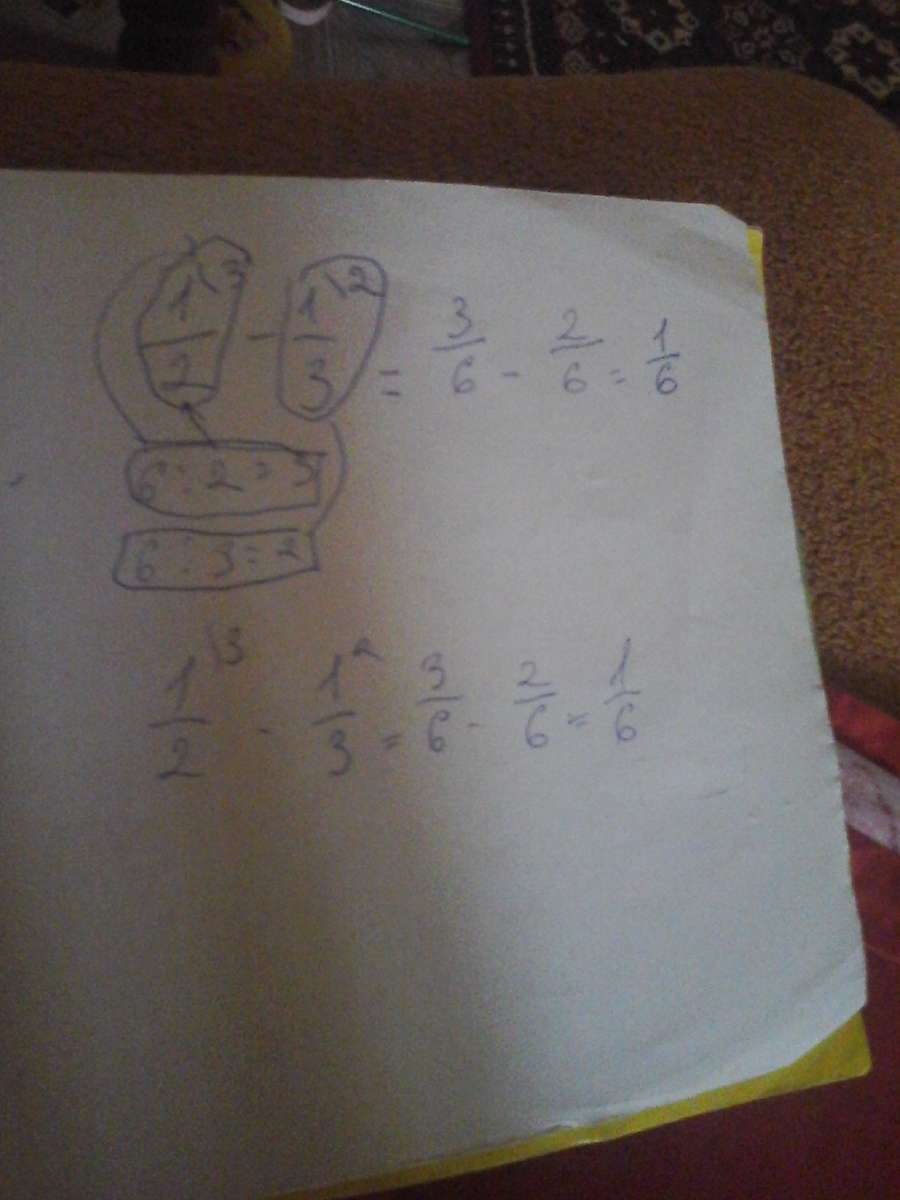 Ты в тетради всё неправильно зделал. Дроби это самая лёгкая тема. вот например: 1/2-1/3 - надо привести к общему знаменателю. общий знаменатель = 6. Потом этот знаменатьль разделить на другие знаменатели и ответы запишишь сверху. короче.