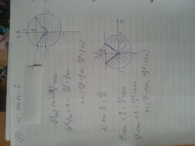 Помогите с Алгеброй! Тема: Тригонометрические равенства! Нужно только а и в! Учительница сказала что нужно рисовать круг... Во вложении! Задание: решить неравенство !
