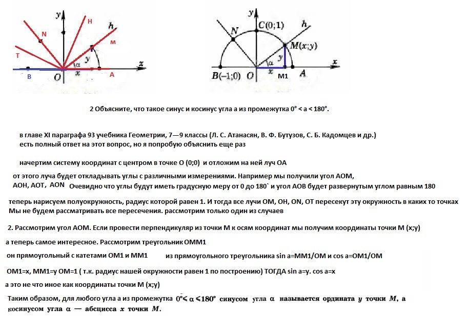 Объясните, что такое синус и косинус угла а из промежутка 0° < а < 180°.