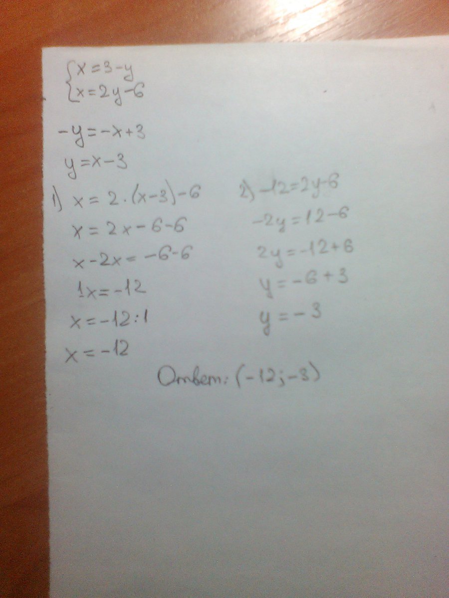 а)x=3-y б)x=2y-6
