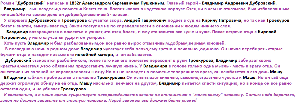 напишите сочинение на 3 - 4 листа Тема вот закон и справедливость В сюжете романа "Дубровский"