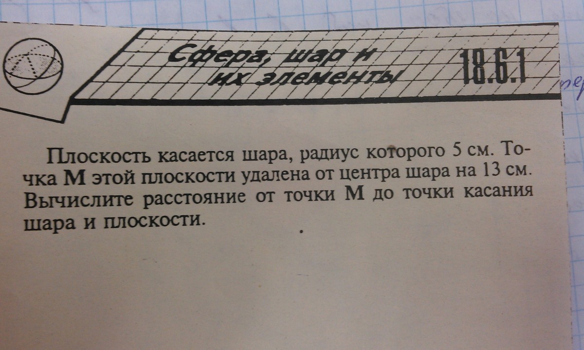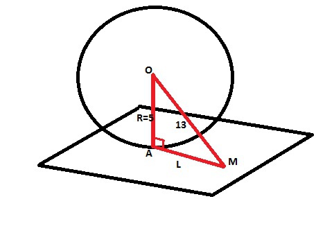 Точка М удалена от центра шару на 13 см, то есть наклонная ОМ (О-центр шара) равна 13см.