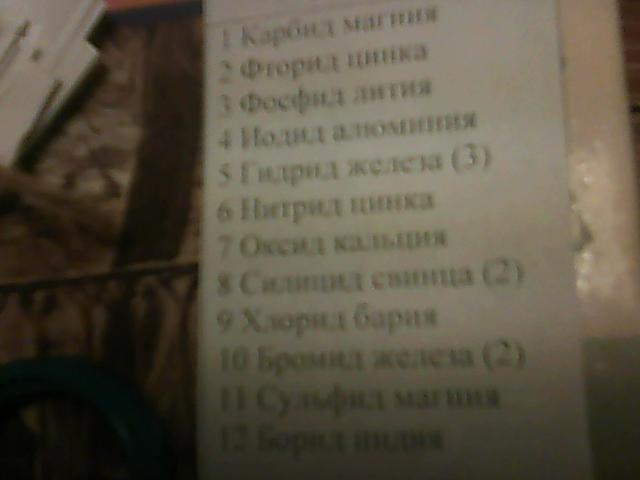 AlI3 у аллюминия +3 у йода -1; FeH3-у железа +3 у водорода -1; ZnN2-у цинка +2, у азота -1; K2O-у калия +1 у кислорода -2; Pb2Si-у свинца +2 у кремния -4; BaCl2-у бария +2 у хлора -1; FeBr2-у железа +2 у брома -1; MgS-у магния +2 у серы -2