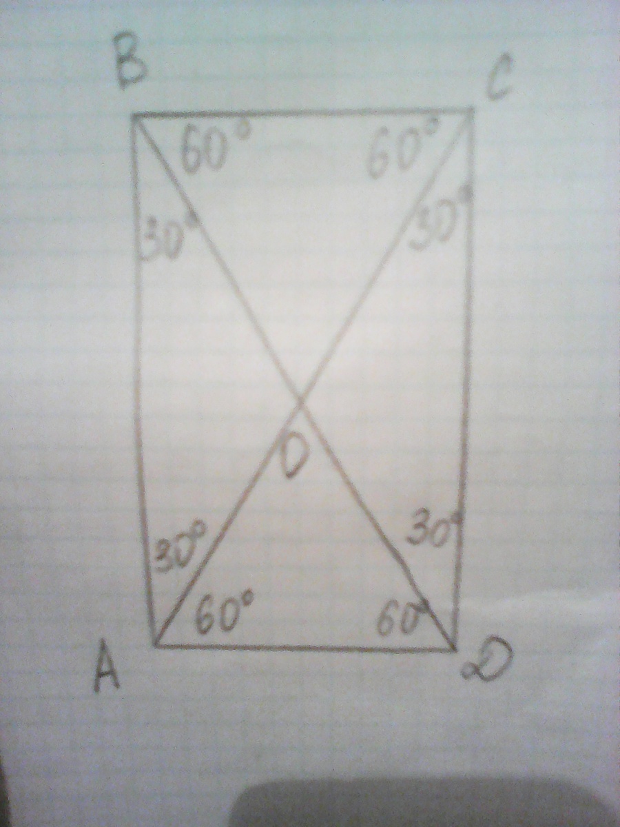 2)В прямоугольнике АВСD диагонали пересекаются в точке О.угол АСВ=60°.Найдите углы ,которые образуют диагонали прямоугольника с его сторонами