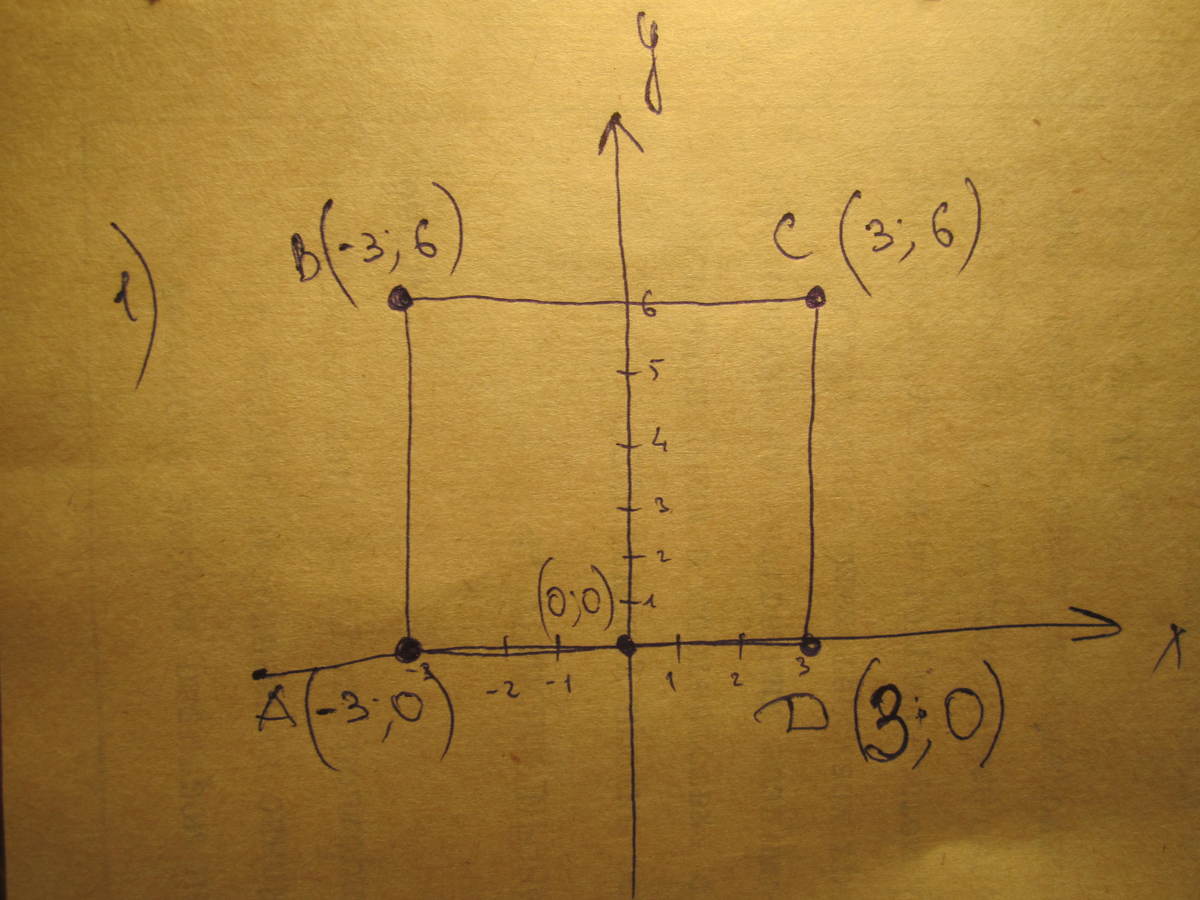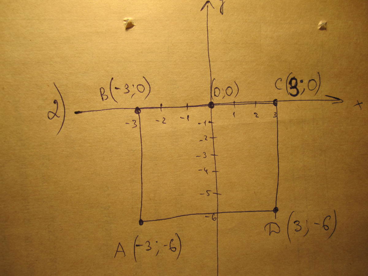 вершины обозначены буквами А, В, С, D. координаты вершин подписаны на рисунке