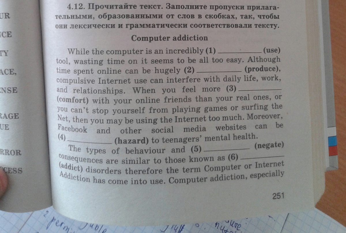 1. useful 2- productive 3- comfortable 4-hazardous 5-negative 6- addictive