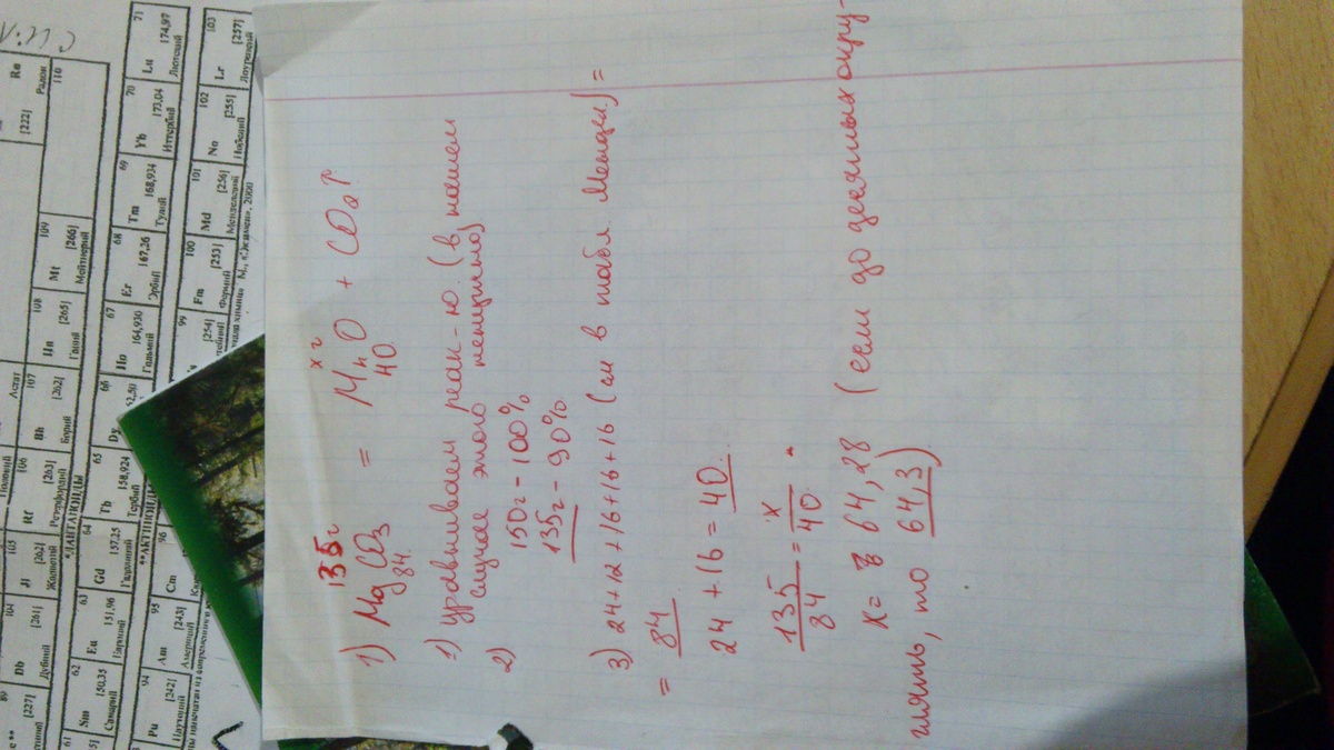 определить массу оксида магния образующегося при разложении 150 г карбоната магния содержащего 10% примесей