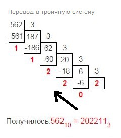 чтобы перевести в любую другую систему можно взять десятичное число (в данном случае 562) и перевести в нужную систему (например в троичную). (ответ в приложении)