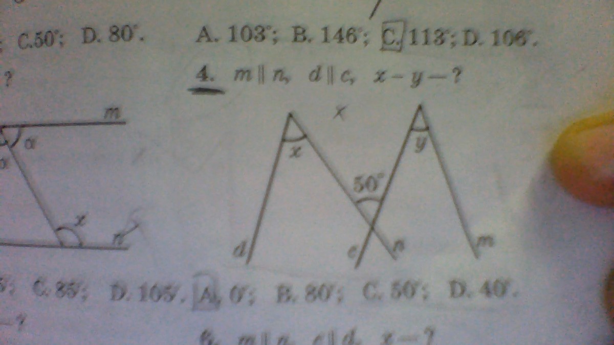 2) x=50 — т.к. C пересекает N под углом 50, то D пересечёт N под тем-же углом, т.к. C||D, M||N