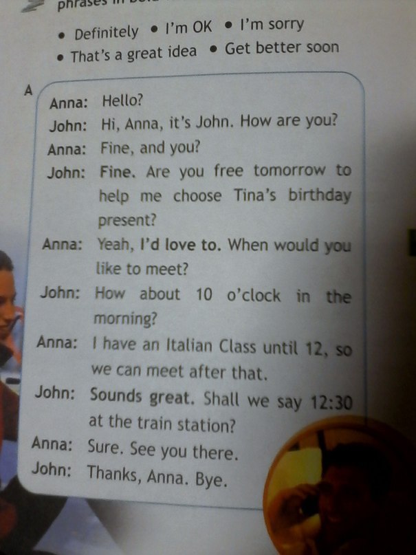 А: У меня урок итальянского до 12. Мы можем встретиться после него.